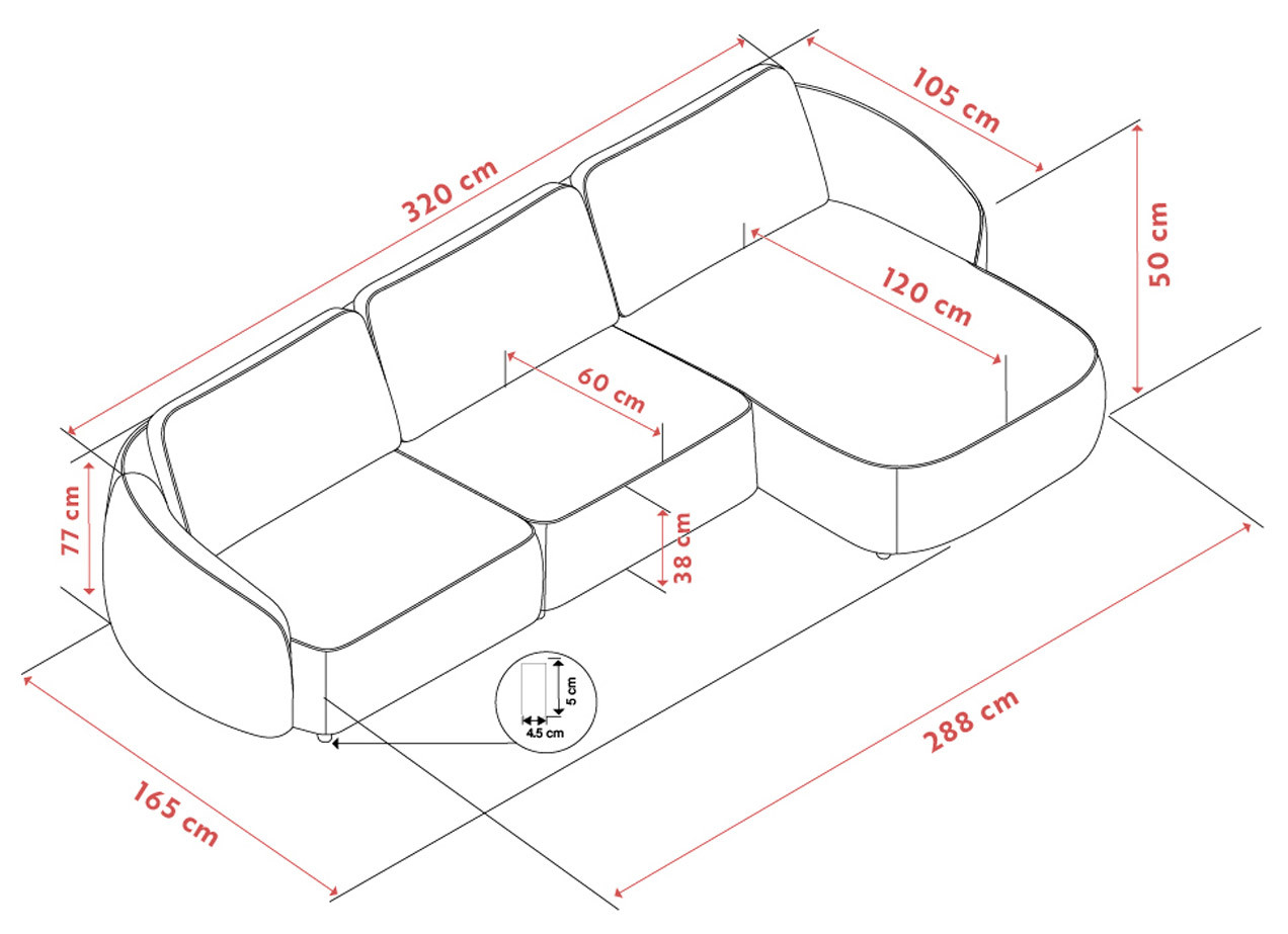 L 320 cm S 105 cm K 77 cm Istuinkorkeus 42 cm |