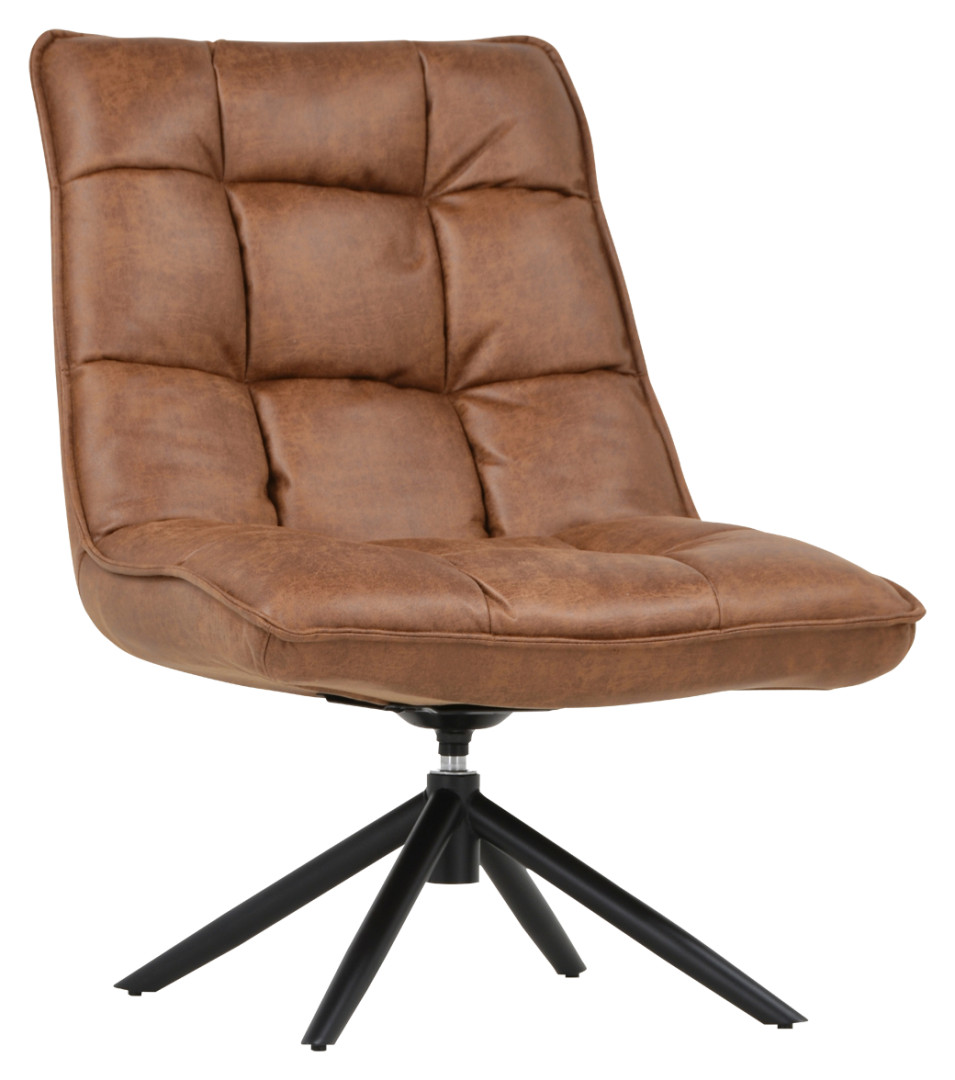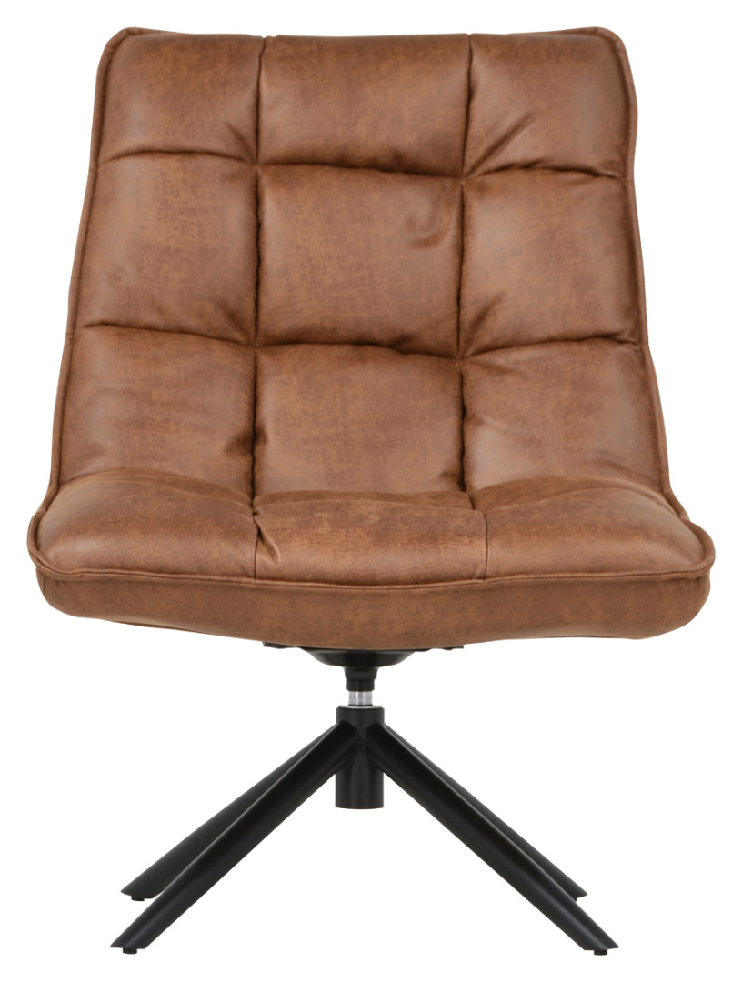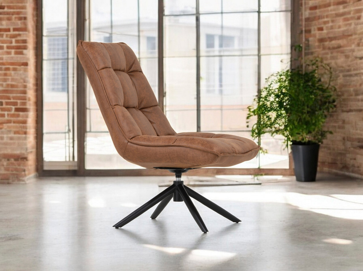Tyylikäs, tukeva ja reilunkokoinen Fremont-nojatuoli, jossa on miellyttävä istua. Lisäksi tämä nojatuoli on myös pyörivä. Tuolin tukeva runko on puuta ja metallia. Istuimen ja selkänojan sisus on vaahtomuovia ja vanua. Nojatuoli on verhoiltu laadukkaalla konjakinruskealla nahkajäljitelmällä, joka on 100 % polyesteriä (Martindale 45 000, Pilling 4, valonkesto 4). Jalat ovat mustaksi pulverimaalattua metallia ja niiden korkeus on 25 cm. Nojatuolin leveys on 76 cm, syvyys 72 cm ja korkeus 102 cm. Istuinleveys on 68 cm, istuinsyvyys 49 cm ja istuinkorkeus 50 cm. Selkänojan korkeus on 58 cm ja leveys 68 cm. Kantavuus 130 kg. Toimitus osina (helppo koota, vain istuin upotetaan jalkaosaan, ei kiinnitysruuveja).