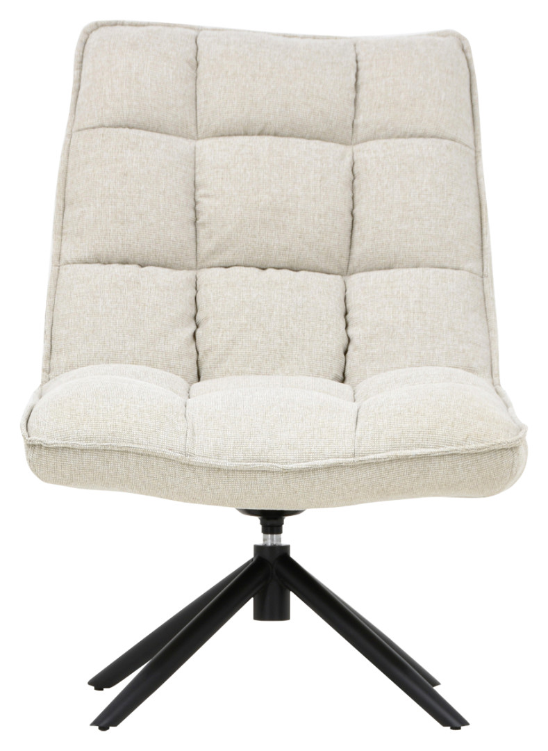 Tyylikäs, tukeva ja reilunkokoinen Fremont-nojatuoli, jossa on miellyttävä istua. Lisäksi tämä nojatuoli on myös pyörivä. Tuolin tukeva runko on puuta ja metallia. Istuimen ja selkänojan sisus on vaahtomuovia ja vanua. Nojatuoli on verhoiltu laadukkaalla hiekan sävyisellä polyesterikankaalla (Martindale 40 000, Pilling 3,5-4, valonkesto 4). Jalat ovat mustaksi pulverimaalattua metallia ja niiden korkeus on 25 cm. Nojatuolin leveys on 76 cm, syvyys 72 cm ja korkeus 102 cm. Istuinleveys on 68 cm, istuinsyvyys 49 cm ja istuinkorkeus 50 cm. Selkänojan korkeus on 58 cm ja leveys 68 cm. Kantavuus 130 kg. Toimitus osina (helppo koota, vain istuin upotetaan jalkaosaan, ei kiinnitysruuveja)