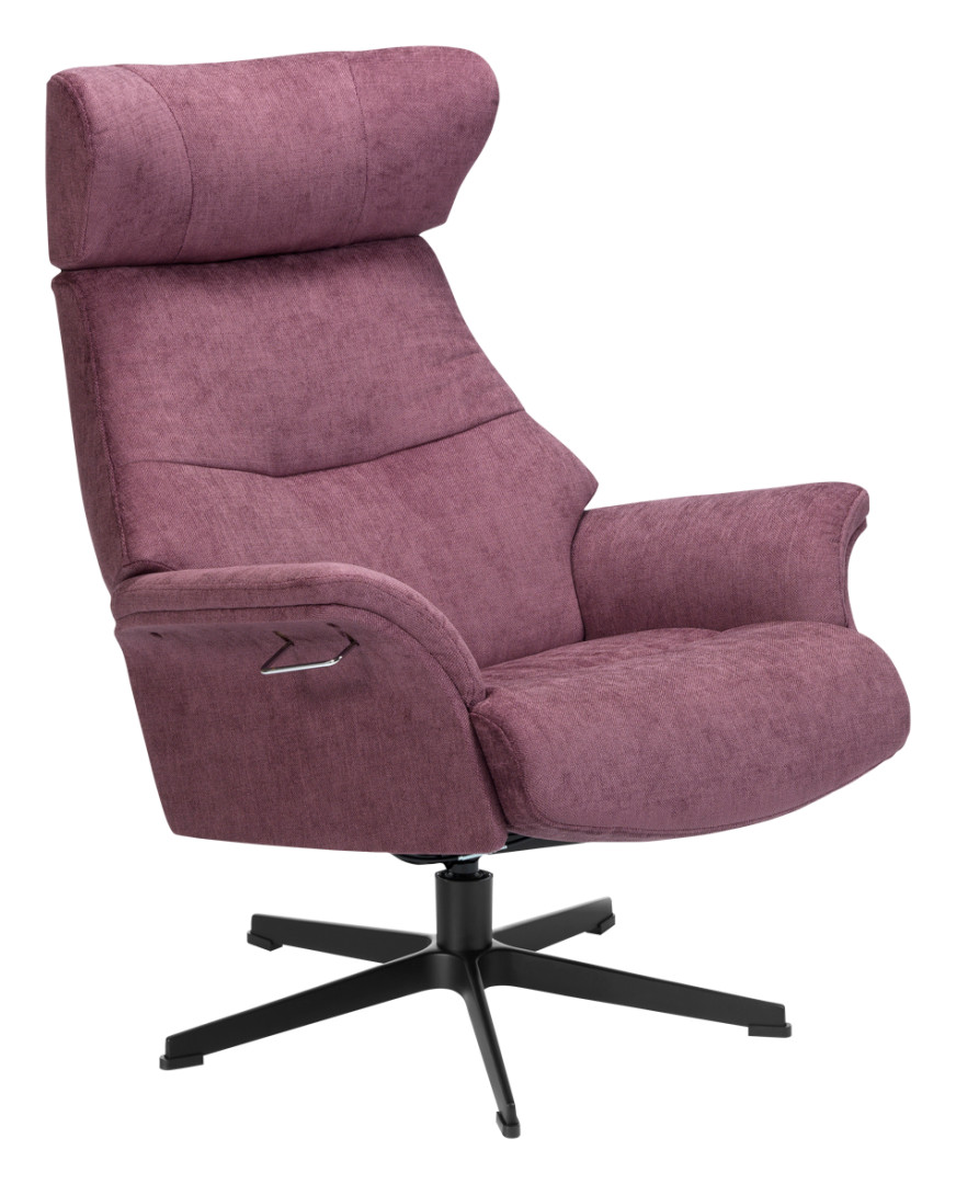Tuolissa on Evita-kangasverhoilu, sävy lavendel, ympäriverhoiltu runko sekä musta alumiinijalka.Selkänoja kallistuu portaattomasti, nostamalla kevyesti käsinojan kahvasta. Niskatukea pystyy säätämään korkeus- ja syvyyssunnassa.Saatavilla myös jalkarahi joka viimeistelee istumamukavuuden.