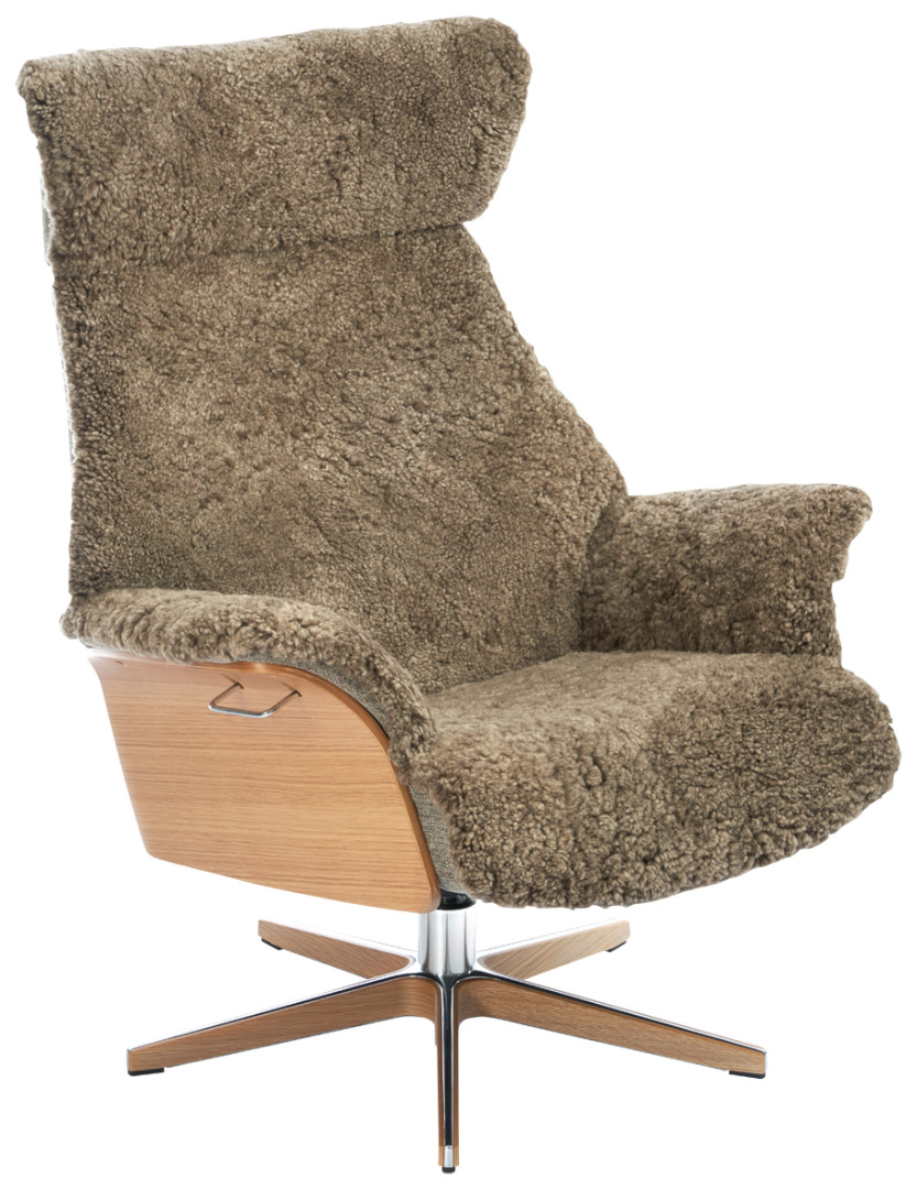 Tuolissa on aito lampaantaljaverhoilu, tammivliitutetu runko sekä alumiini/puu ristikkojalka, sävynä sama tammi kuten rungossa. Saatavilla myös jalkarahi joka viimeistelee istumamukavuuden.