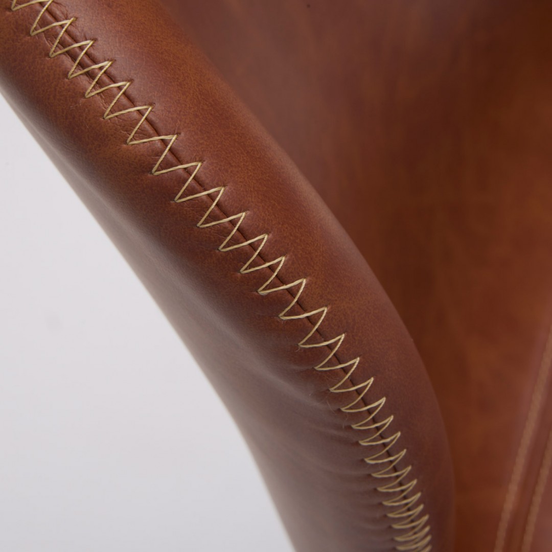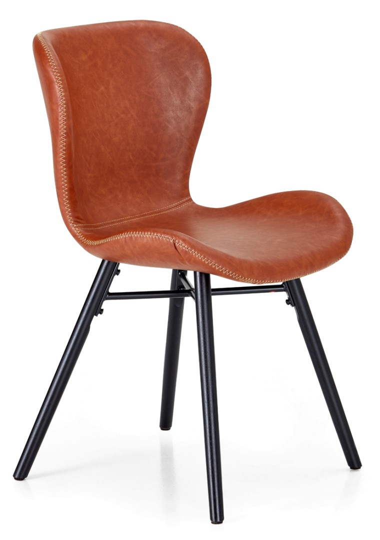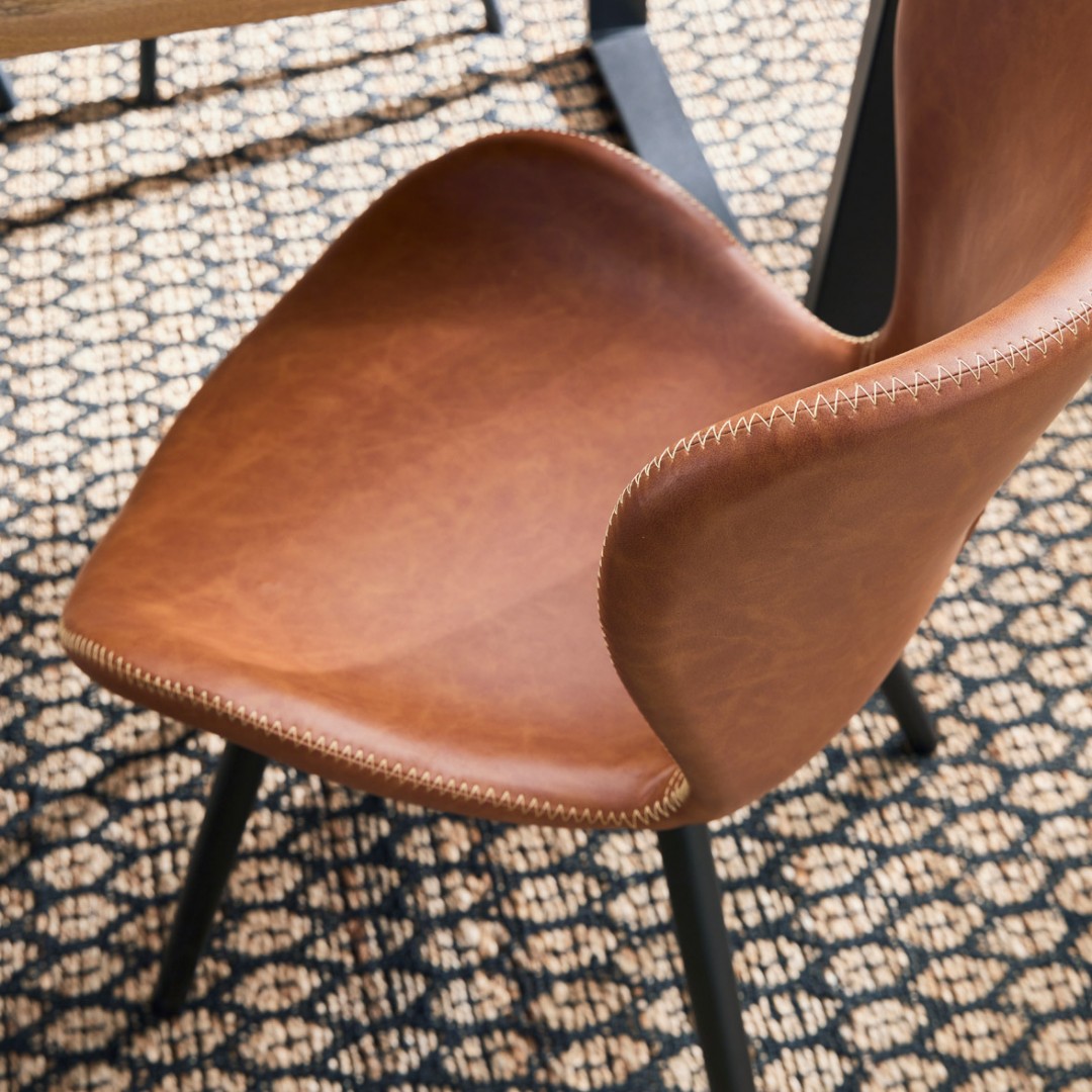 LINE-tuolissa on jotain retroa ja jotain todella uudenaikaista. Tässä punaruskeassa, keinonahkaisessa ruokatuolissa on tyylikkäänä yksityiskohtana vaaleat tikkaukset istuimen sivuilla. Jalat ovat mustaksi maalattua kumipuuta, joka sopii hyvin ruokatuolien materiaaliksi, sillä se on kovaa puuta eikä siinä näy naarmut helposti. Verhoilu on keinonahkaa, joka on helppohoitoista. Se kestää hyvin kosteutta ja likaa, joten voit pyyhkiä sen helposti puhtaaksi. Keinonahka on vahvaa ja kestävää materiaalia eikä se repeydy yhtä helposti kuin aito nahka.