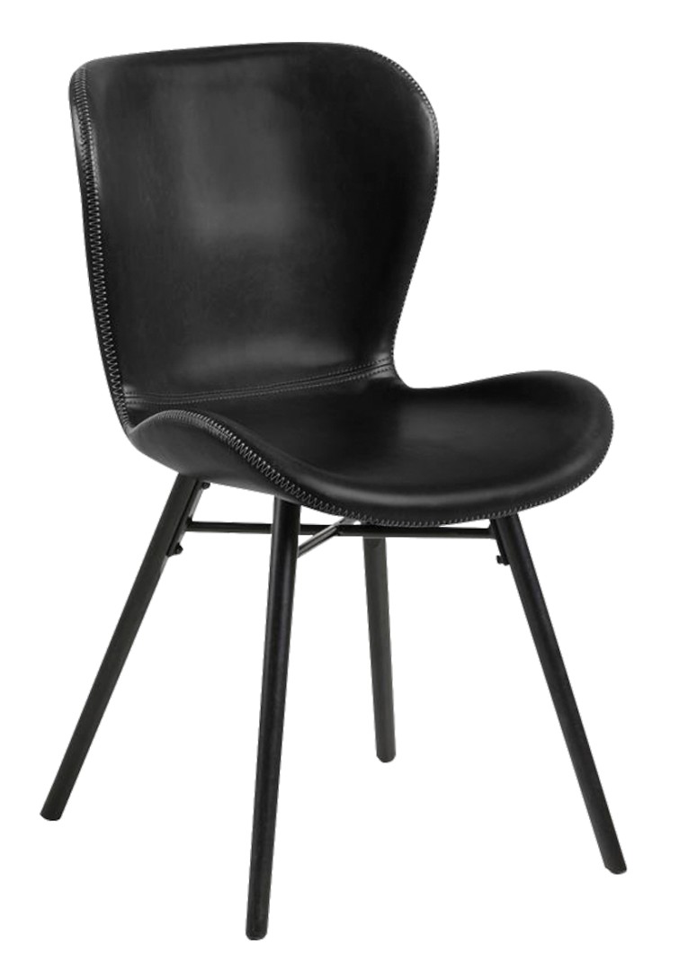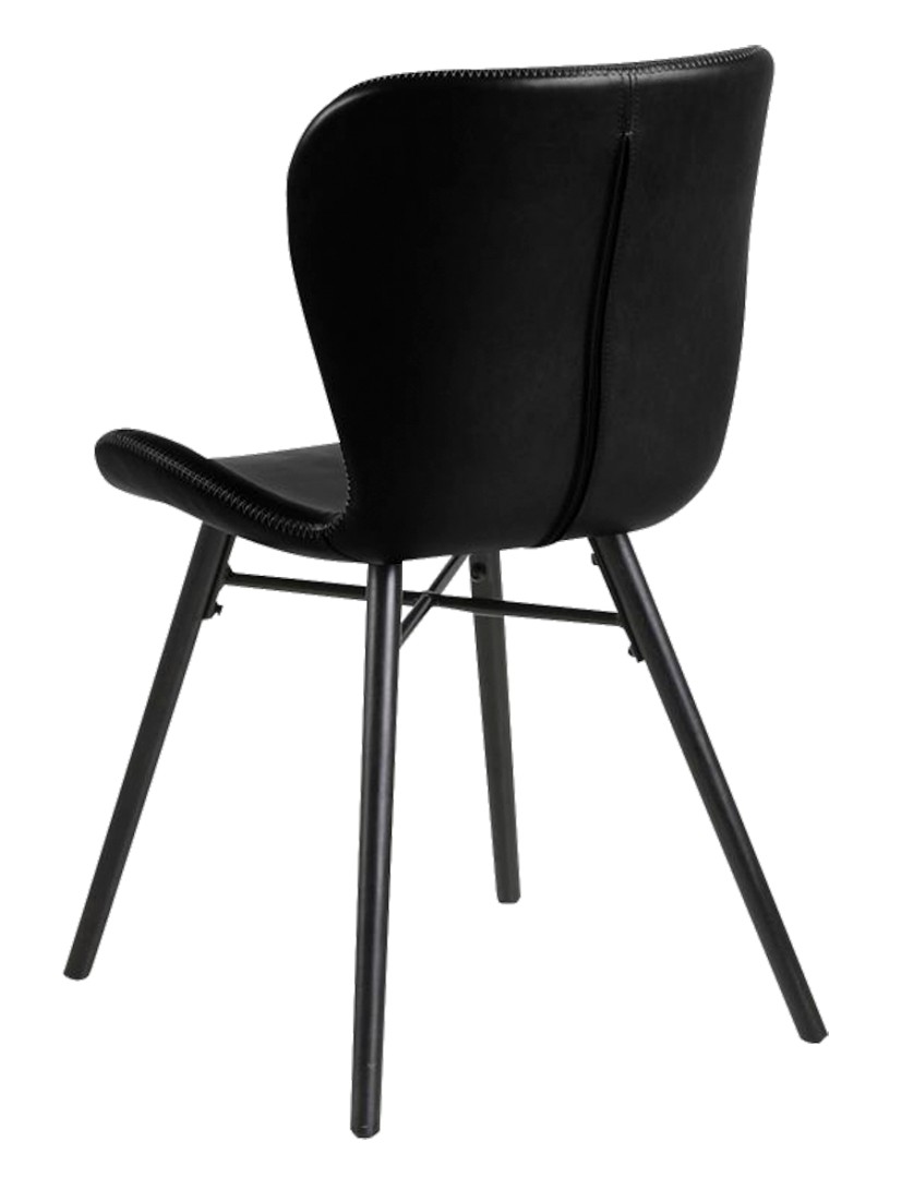 LINE-ruokatuoli tuo modernin ja linjakkaan tyylin ruokailutilaasi. Keinonahkaverhoilu peittää pehmeästi tuolin istuimen ja selkänojan, tarjoten mukavuutta ja helppohoitoisuutta arkeen. Verhoilun ja tukirakenteen väliin sijoitettu pehmuste tekee tuolista miellyttävän istua, vaikka ilme onkin kevyen elegantti. Mustaksi maalatut puujalat luovat tukevan, mutta sirot rakenteen, ja tuolin jalkoihin lisätty metallitukiristikko tuo näyttävyyttä ja modernia ilmettä.