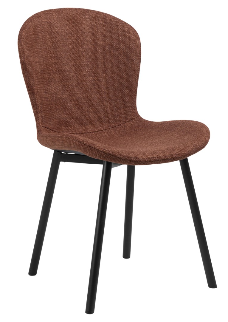 Tämän ESRA-ruokatuolin kaaret ja kontrastia tuovat mustat jalat piristävät ruokailutilaasi. Strukturoidulla, tiilenpunaisella kankaalla verhoiltuna se sopii hyvin tuomaan väriä sisustukseen. Trendikkään muotoilun ja pehmeän eleganssin yhdistäminen lisää ainutlaatuista viehätystä. Tällainen tuoli on erottuva kappale arkisiin perheen aterioihin sekä juhlahetkiin kotisi sydämessä.
