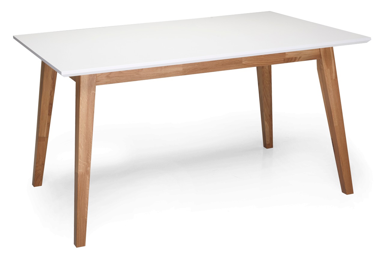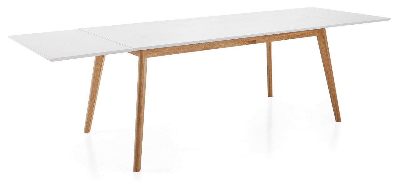 Ruokapöydän runko on tammea ja kansi valkoista mdf-levyä. Pöytä on jatkettavissa erikseen ostettavilla jatkopaloilla.