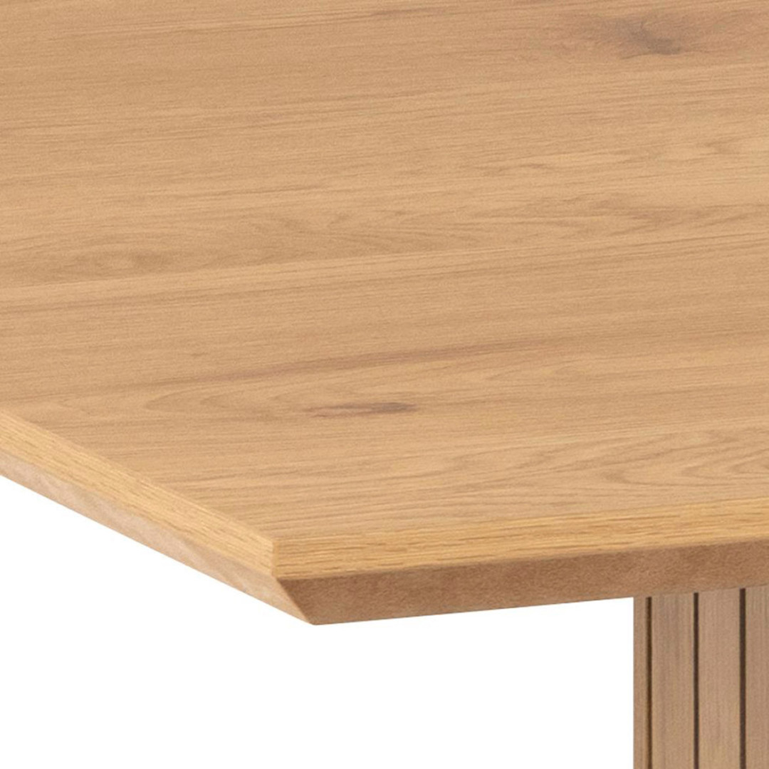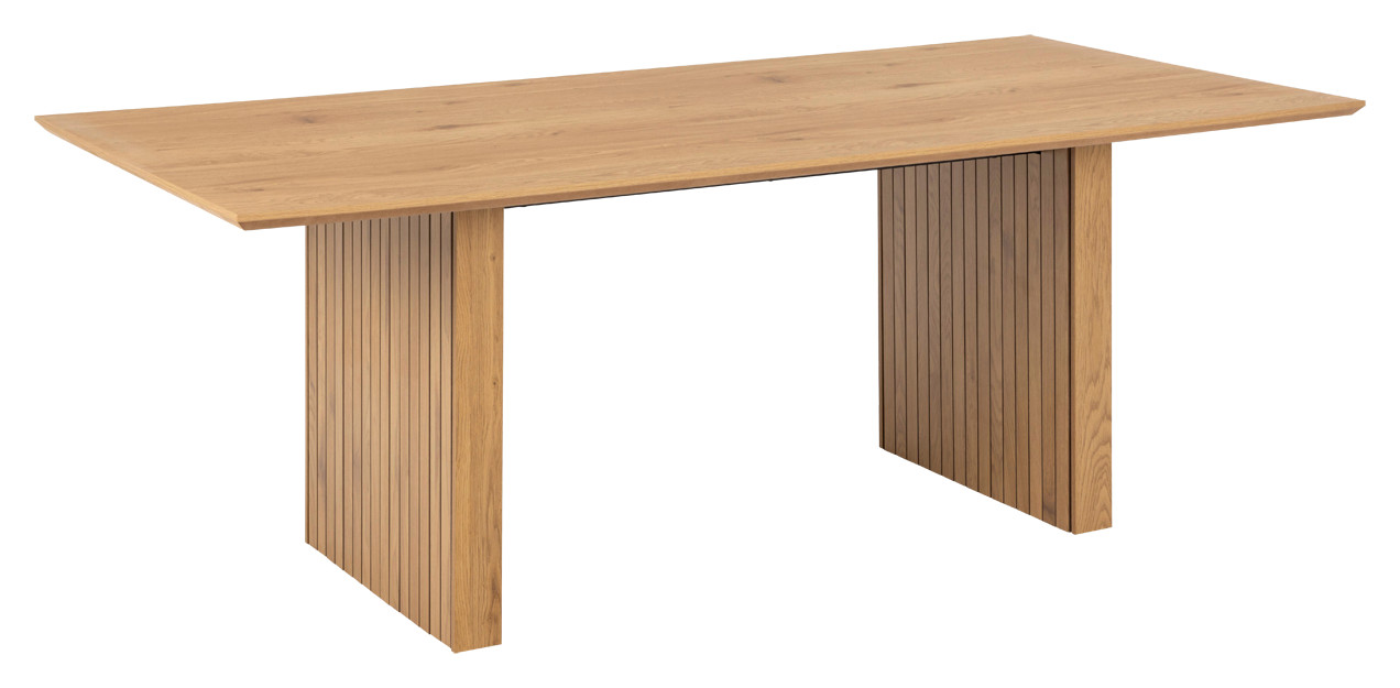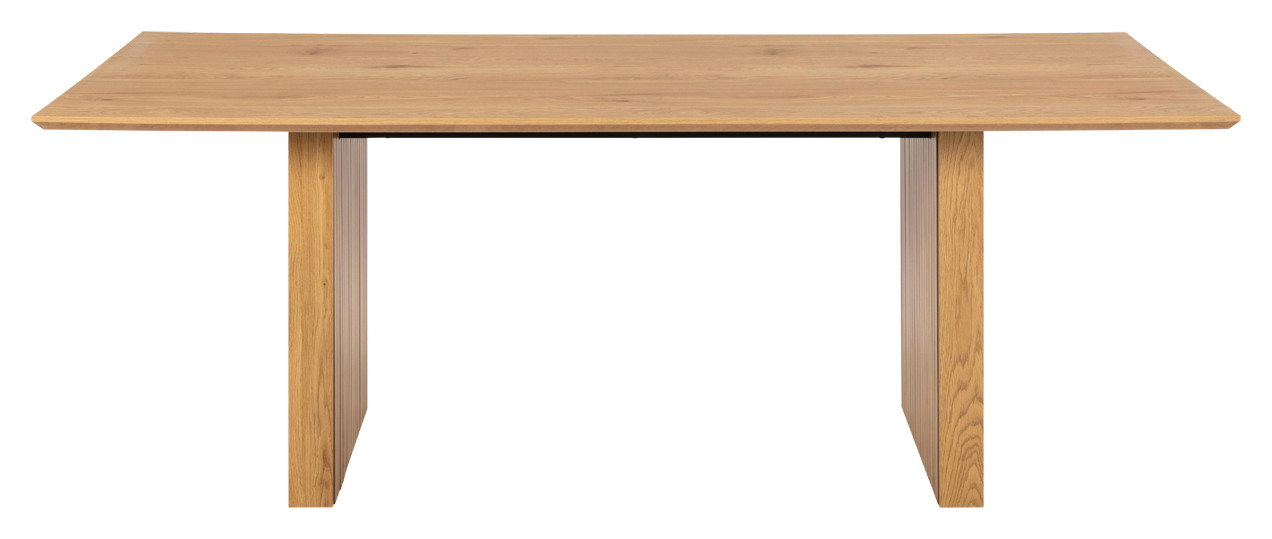 Jos pidät japandi-tyylistä, tämä suorakaiteen muotoinen COLIMA-ruokapöytä on juuri sinua varten! Pöydässä on suoraviivaiset linjat, jotka antavat sille minimalistisen siluetin, ja tammen lämmin sävy lisää luonnonläheistä ilmettä keittiösi sisustukseen. Ruokailutilan katseenvangitsijaksi pääsevät kuitenkin pöydän jalat, joissa on upea rimoitus. Isolla pöydällä on tilaa monenlaisille kattauksille niin juhlaan kuin arkeenkin, ja pöydän ympärille mahtuu helposti 6-8 ihmistä. Tämä pöytä tekee jokaisesta ruokailukokemuksesta tyylikkään!
