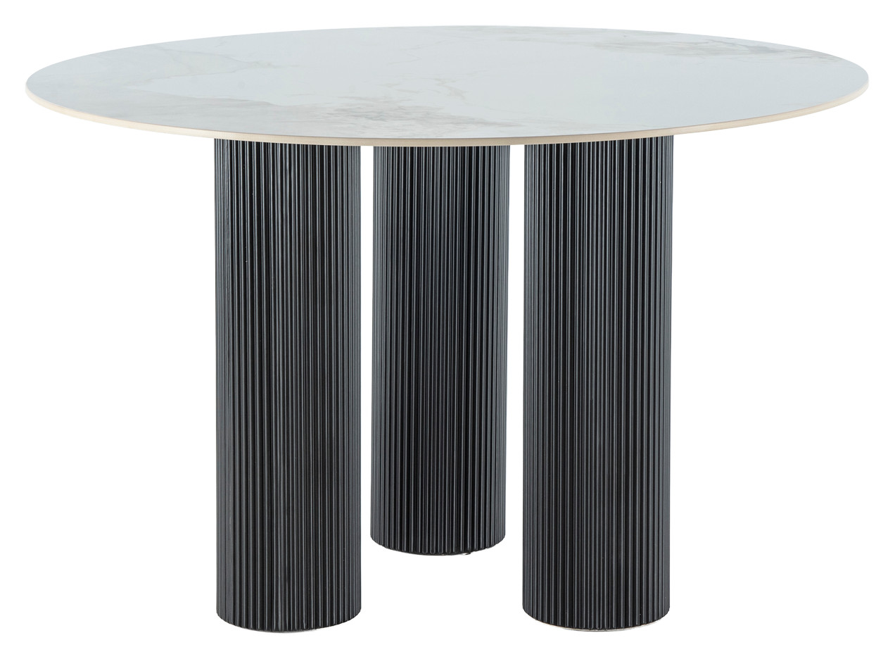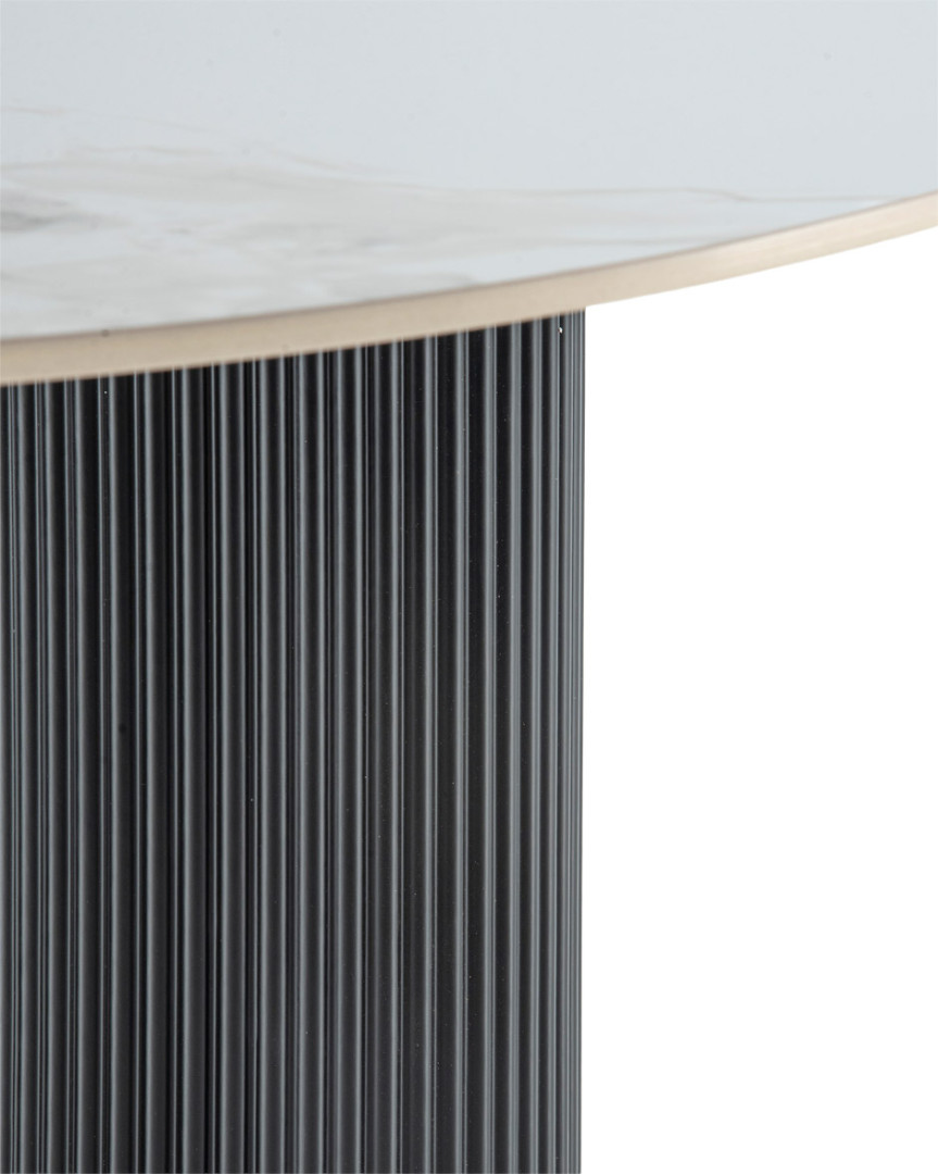 MANSON-ruokapöydän tukeva ja näyttävä jalkaosa koostuu kolmesta erillisestä, mustaksi maalatusta ja uritetusta osasta. Tämä uniikki jalkarakenne ei ainoastaan takaa pöydän vakautta, vaan toimii myös tyylikkäänä design-elementtinä.