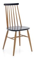 Pyöreä ruokapöytä pinnatuoleilla on ikuinen klassikko! Mustan ja tammipuun yhdistelmä on ajattoman tyylikäs ja sopii väritykseltään upeasti monenlaisiin sisustuksiin. Tuuli-ruokaryhmään kuuluu 115 cm leveä tumma, pyöreä keittiönpöytä ja neljä pinnatuolia. Lumoava pinnatuoli on sekä modernin, että perinteisen sisustajan valinta. Korkea sulavalinjainen selkäkaari takaa ryhdikkään ja tukevan istuvuuden tähän ajattoman tyylikkääseen tuoliin. Ruokapöydän sirot jalat tukevat upeaa massiivipuista kokonaisuutta, joka on laadukasta ja kestävää huonekalualan ammattilaisten valmistamaa käsityötä.
