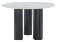 Pöydän uniikki ja tukeva jalkaosa koostuu kolmesta erillisestä, mustaksi maalatusta ja uritetusta MDF-osasta. Tämä design-elementti tuo pöytään modernia ilmettä ja takaa samalla erinomaisen vakauden. Pöydän korkeus (76 cm) on suunniteltu täydellisesti yhteen useimpien ruokatuolien kanssa.