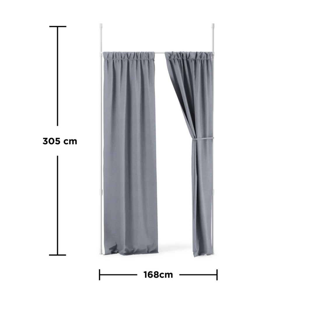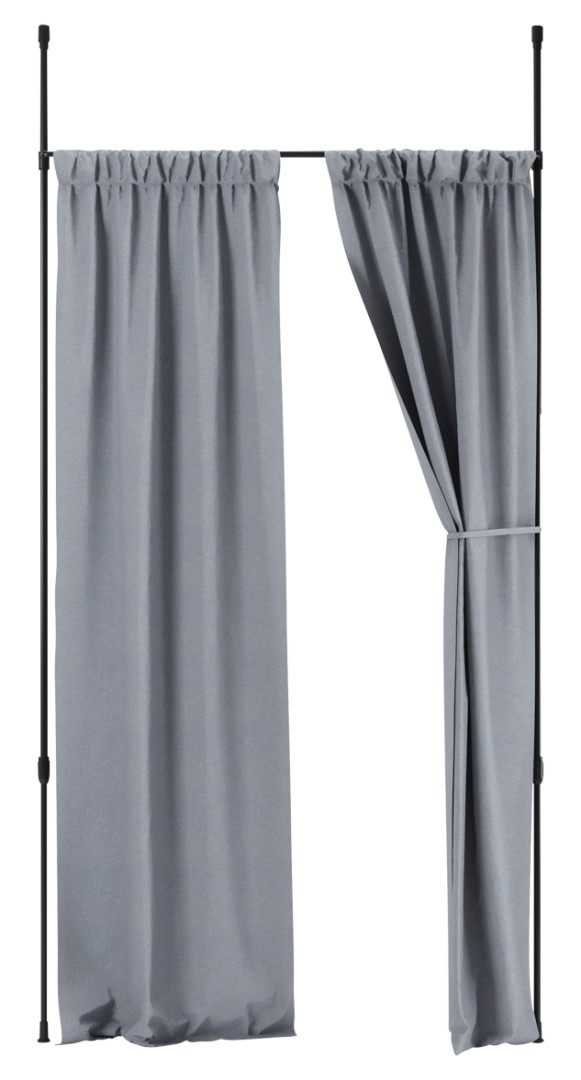 ANYWHERE-tilanjakaja/verhotanko on monikäyttöinen ja helposti asennettava. Tilanjakajan korkeus on säädettävissä 213-304 cm välillä ja leveys 91-167 cm välillä. Tankoon on helppo kiinnittää verhot ilman että seiniin tarvitsee porata reikiä ja telineen avulla verhot saa tiiviisti ikkunan ympärille, mikä mahdollistaa paremman pimennyksen. Makuuhuoneessa saat tilanjakalla yksityisyyttä ja avoimissa tiloissa voit halutessasi ympäröidä vaikka koko sängyn useamman tilanjakajan yhdistelmällä. Verhoja vaihtamalla saat myös muutettua huoneen ilmettä mielesi mukaan.