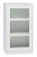 Kokoonpanossa PALLAS-vitriinisarjan lasiovikaappi nro.V02L sekä kansi nro.V21.